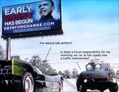 Когда в следующий раз начнете сеанс игры в этот рейсинг, обратите внимание на внутриигровые билборды с изображнием известного кандидата (см. скриншот). "Я подтверждаю, что кампания Обамы заплатила за внутриигровую рекламу в Burnout", - сообщил директор по корпоративным коммуникациям в Electronic Arts. Но если вы хотите стать президентом, вам точно не следует вставлять свое лицо в Fallout 3.